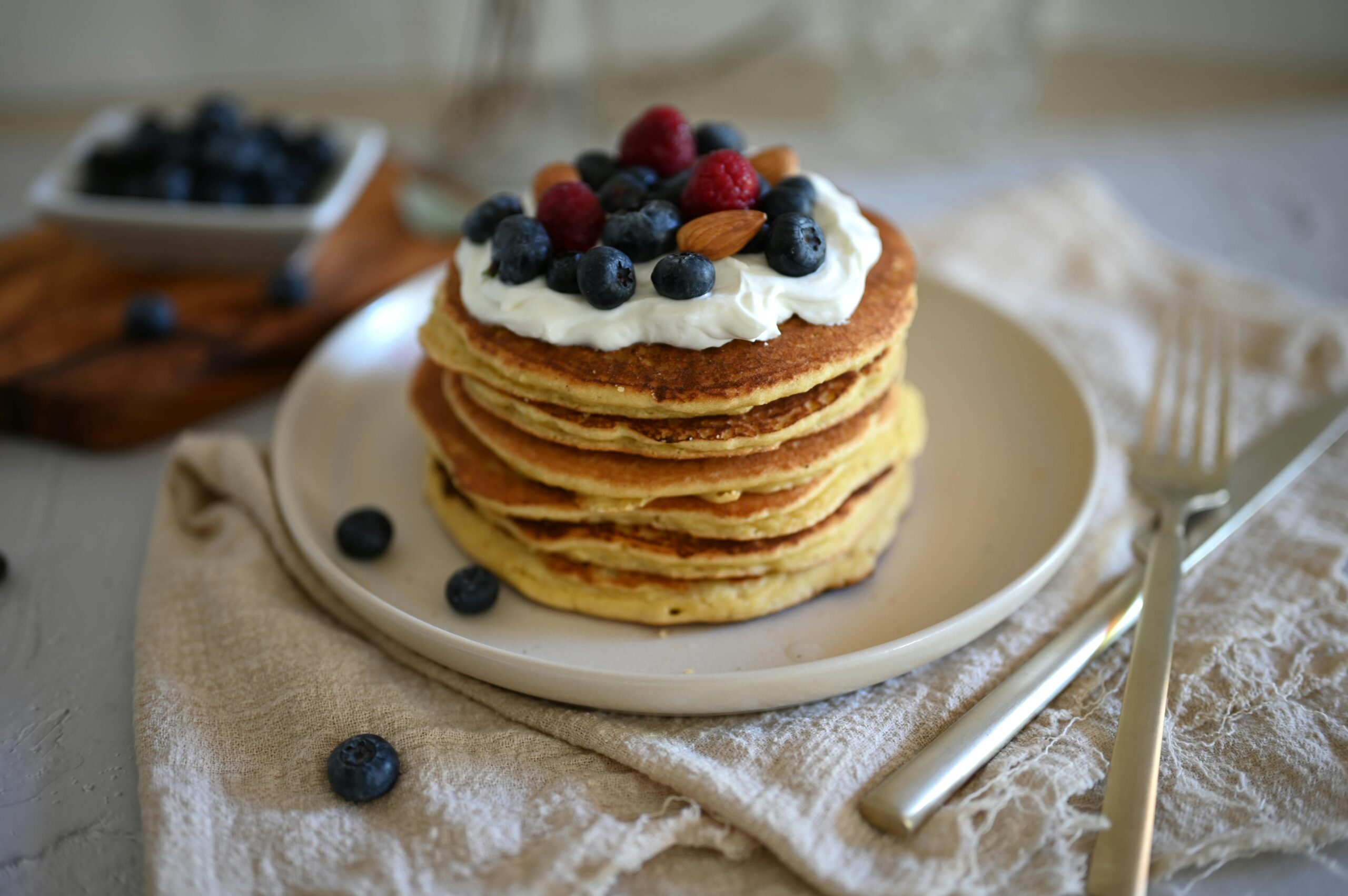 Fluffy, naturally sweet pancakes made with almond flour and ripe bananas. Served with maple syrup and seasonal fruits — perfect for guilt-free indulgence.